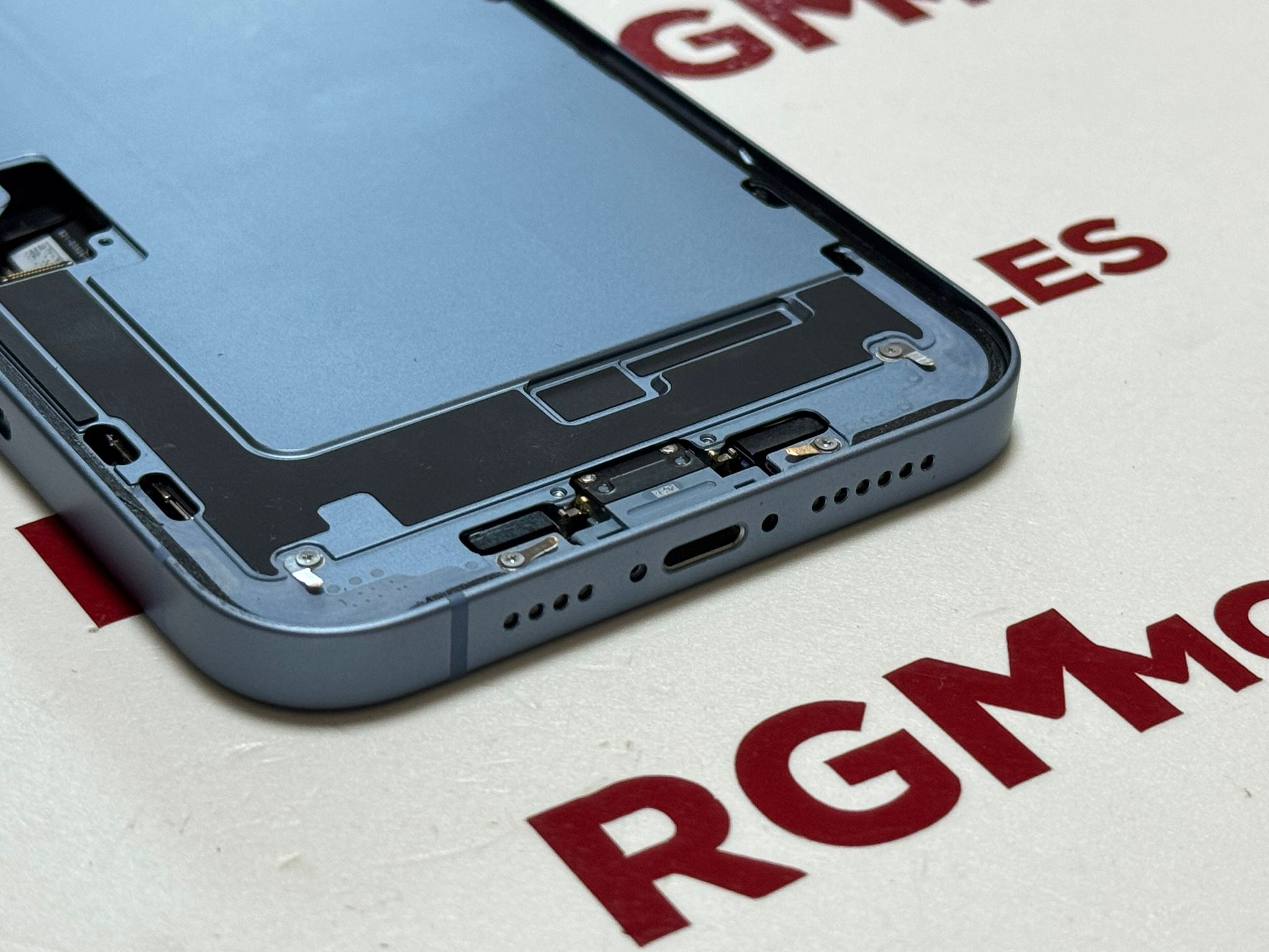 Iphone 14 Plus chasis intermedio+batería+conector de carga+componentes azul cantidad