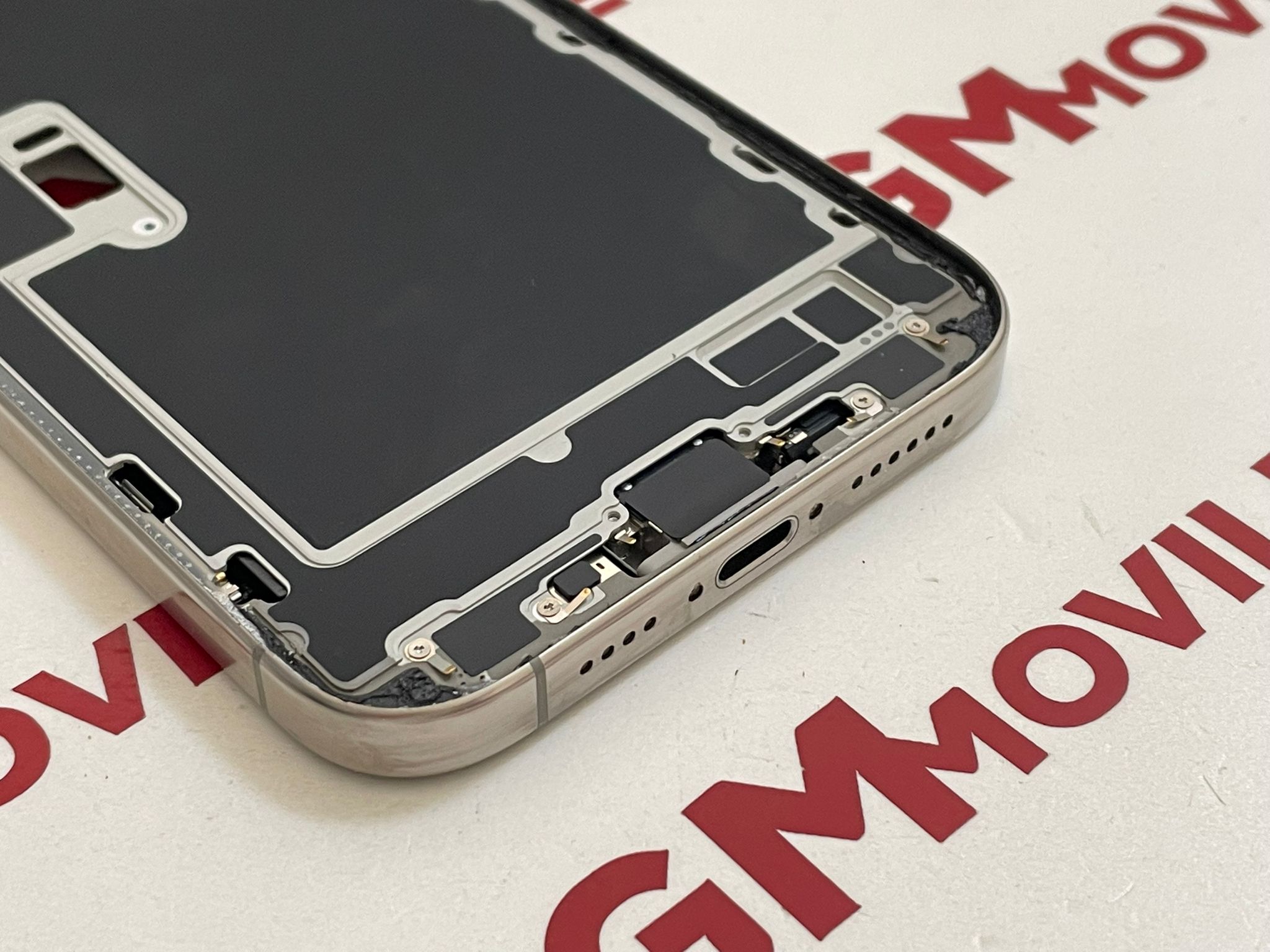 Iphone 16 Pro Max carcasa chasis intermedio con batería y componentes titanio natural