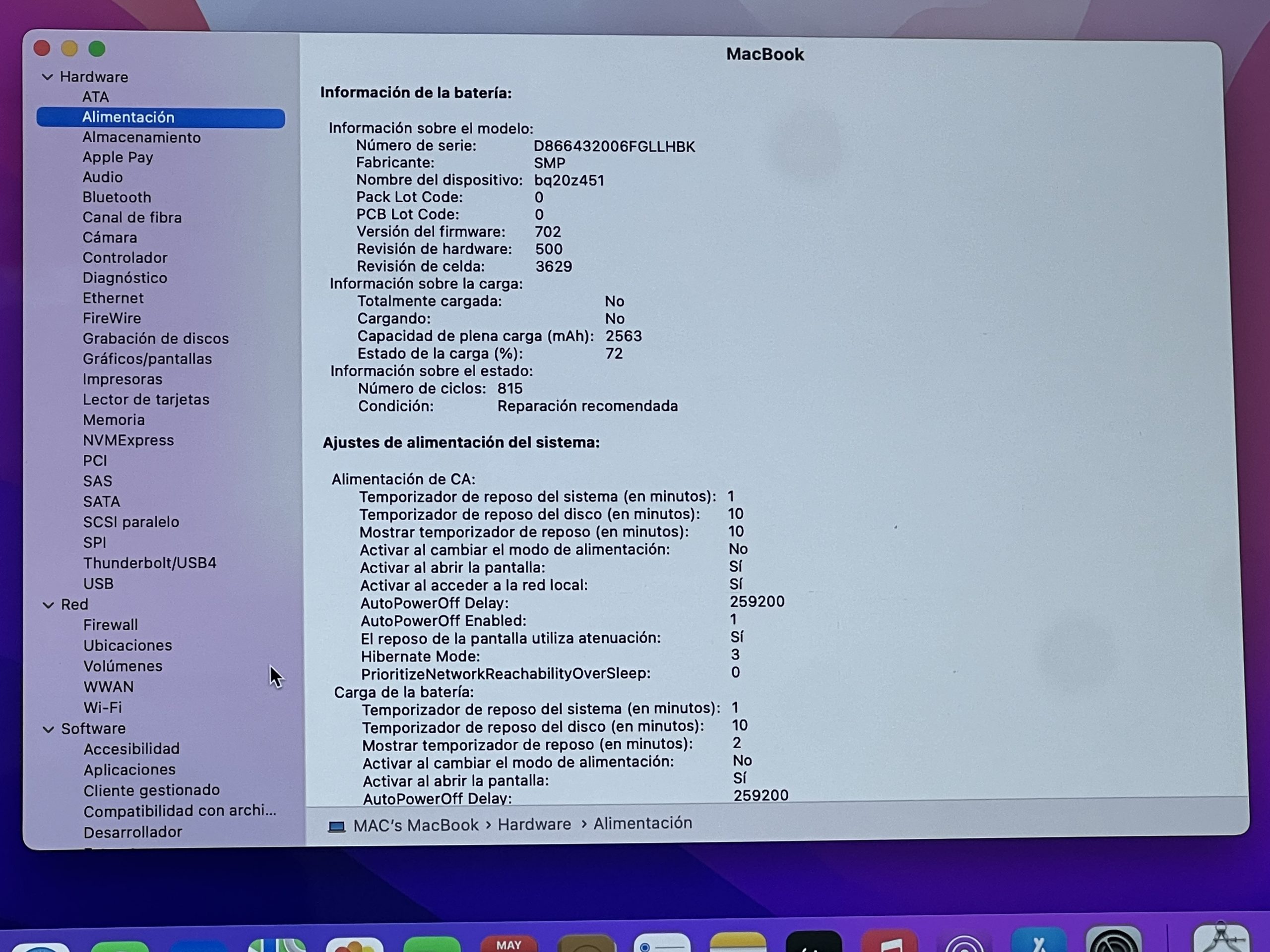 CICLOS DE CARGA: 815 (REPARAR)